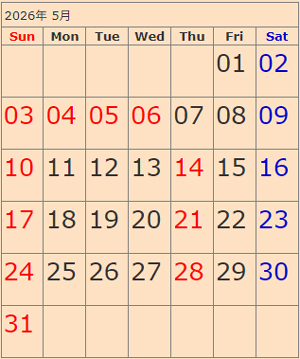 赤字が休診日になります