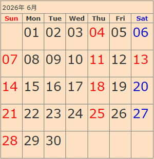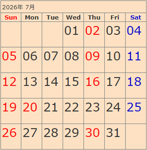赤字が休診日になります